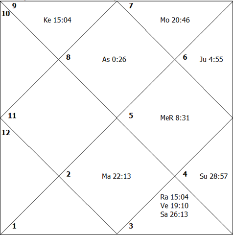 The vedic horoscope at the moment of her release from detention has Scorpio lagna with a conjunction of Mars, the lagna lord with Mercury the eleventh house lord and Venus, the seventh house lord, all in posited the 11th house, the house of f